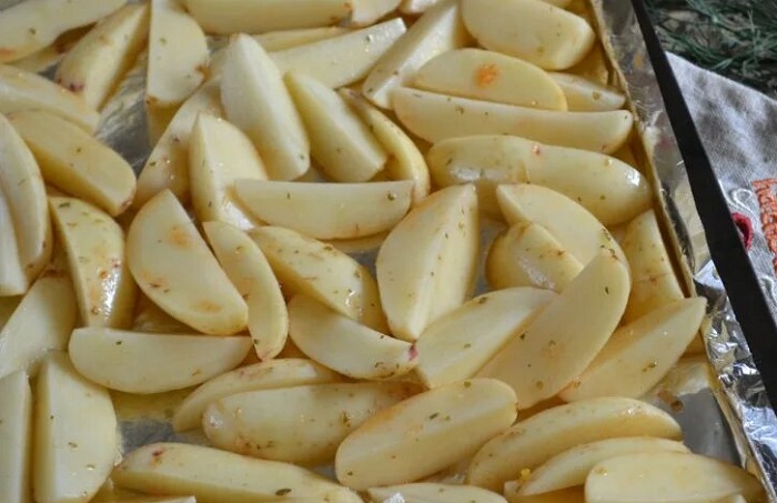На заметку: Это не единственный способ приготовления картофеля по-деревенски. Некоторые повара советуют сначала отварить его в подсоленной воде на протяжении 7-10 минут, а уже потом мариновать в специях и укладывать на противень. В этом случае время приготовления в духовке сократится до 20 минут.