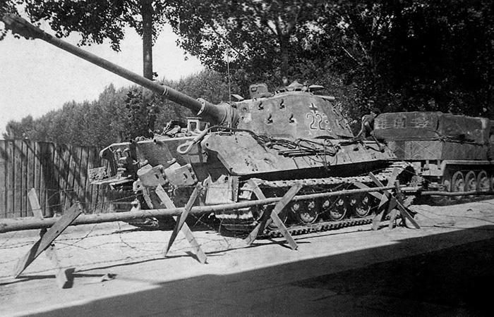Немецким танкистам того времени тоже пришлось хлебнуть лиха с этими танками. Причём в воспоминаниях тех, кто воевал на Tiger II, встречаются и восторженные оценки, и откровенные жалобы на слабые места и недостатки. Пушка действительно поражала почти любой танк союзников ещё до того, как те могли прицелиться. Лобовая броня выдерживала попадания даже 85-мм снарядов, и на ней оставались только вмятины и сколы, а экипажи чувствовали себя почти непобедимыми, особенно в обороне и с хорошим снабжением. Вот только танкистам приходилось мириться с поломками и страхом застрять внутри. Масса в 69 тонн превращала танк в уязвимую цель на раскисших дорогах. В бою Tiger II редко шёл быстрее 20–25 км/ч, чтобы не рисковать трансмиссией, а отступление или маневренный бой превращались в проблему. Нередко экипажи бросали Tiger II из-за нехватки топлива или невозможности вытянуть застрявшую машину.