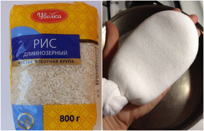 Если вам нужен горячий компресс, разогрейте мешочек в микроволновке на протяжении 30 секунд (времени может понадобится чуть больше). Кстати, при желании можете добавить в рис пару капель эфирного масла – тогда компресс будет еще и приятно пахнуть.