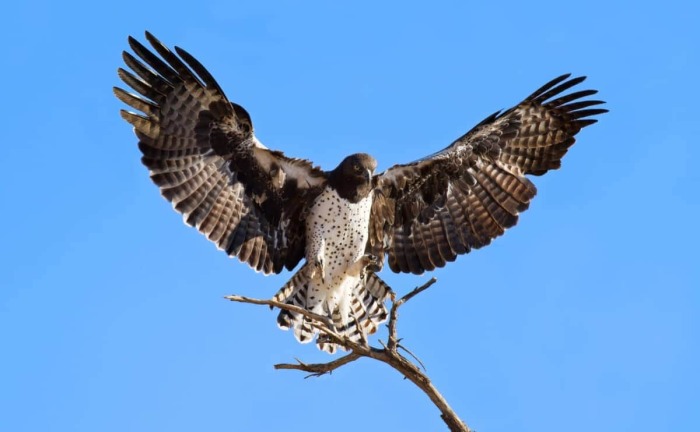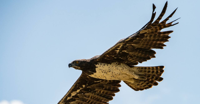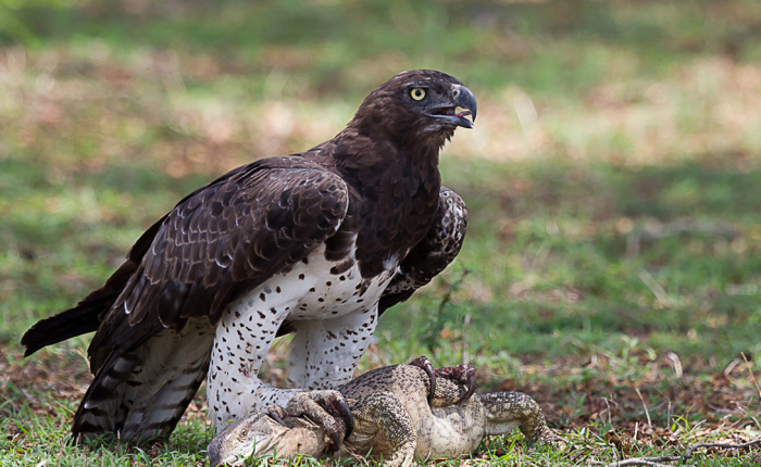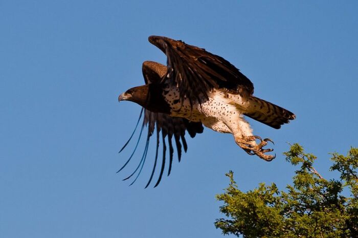 Оказавшись в африканской саване, нужно оставаться предельно внимательным и осторожным, ведь где-нибудь за кустами вполне может притаиться пара-тройка голодных львов или даже носорог. Однако, опасность подстерегает незадачливого любителя сафари отнюдь не только на уровне горизонта. Где-то там в голубой бездне уже может парить один из крупнейших пернатых хищников – боевой орёл.