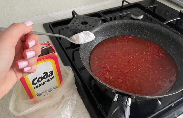 Просто воспользуйтесь нашим секретом, и ваш томатный соус выйдет превосходно. А поможет вам в этом самая обычная сода. Добавьте немного соды в соус и тщательно перемешайте. Не стоит брать слишком много, достаточно будет чайной ложечки. Добавлять соду следует понемногу, чтобы не переборщить. И всегда проверяйте на вкус. Как только кислота исчезнет, прекратите добавлять соду. Тогда ваш томатный соус получится просто идеальным.