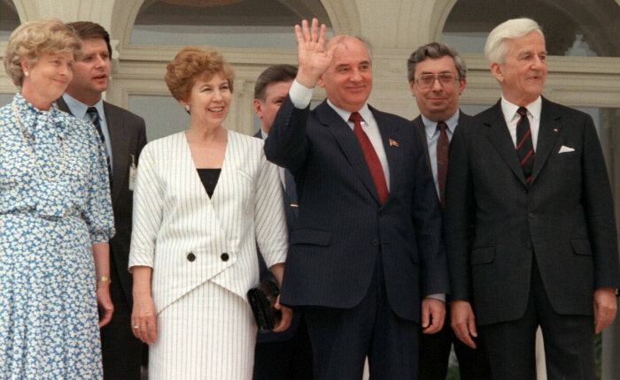 Раиса и Михаил Горбачёв и президент Германии Рихард фон Вайцзеккер с супругой Марианной фон Вайцзеккер в Бонне, Германия, 12 июня 1989 года. \ Фото: ga.de.