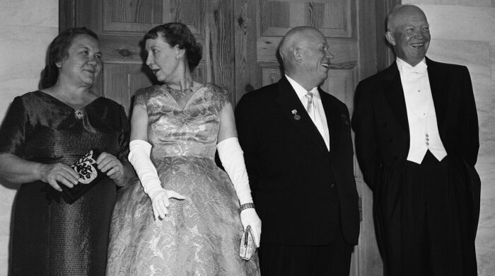 Никита Хрущёв и Дуайт Дэвид Эйзенхауэр с супругами в советском посольстве в США. \ Фото: bing.com.