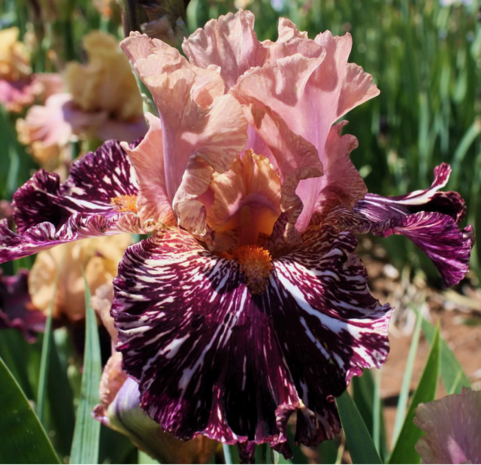 Ирис бородатый, один из видов обычного ириса, также способен накапливать влагу и не нуждается в частом и постоянном поливе. Вся она собирается в его хорошо развитом корневище. Растение в принципе предпочитает сухие сады более влажным почвам. Однако для того, чтобы он хорошо цвёл корневищам необходимо много солнца. Назван он так из-за щетинки, которая вырастает на лепестках. Имеет огромное разнообразие оттенков от пастельных тонов, до самых ярких, красных и фиолетовых. Растение также будет отлично переносить морозы, и быстро адаптируется к различным условиям при посадке. А сажать их стоит весной, чтобы они успели набраться силы, питательных веществ и окрепнуть до наступления продолжительной зимы.
