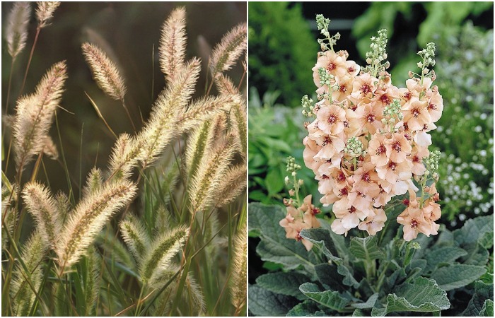 Вербаскум — потрясающее растение, имеющее высокие вертикальные колособразные соцветия, в основном пастельных или розовых тонов. Они очень мягкие и устойчивые к потере почвой влаги. Цветёт он в июле или августе.