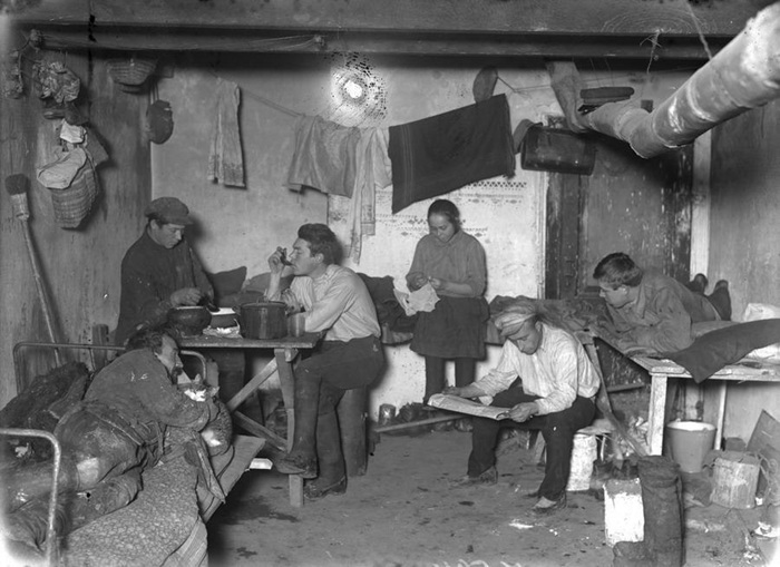 Схема расселения такая: на каждого человека полагалась норма жилплощади - по информации редакции novate.ru, изначально её определили в 9,1 квадратных метров, а каждое нежилое помещение теперь считалось совместной собственностью всех жильцов квартиры, что старых, что новых. Постепенно из-за нехватки жилья на всех норму снижали, и в итоге на каждую комнату полагалась уже целая семья, а то и больше.