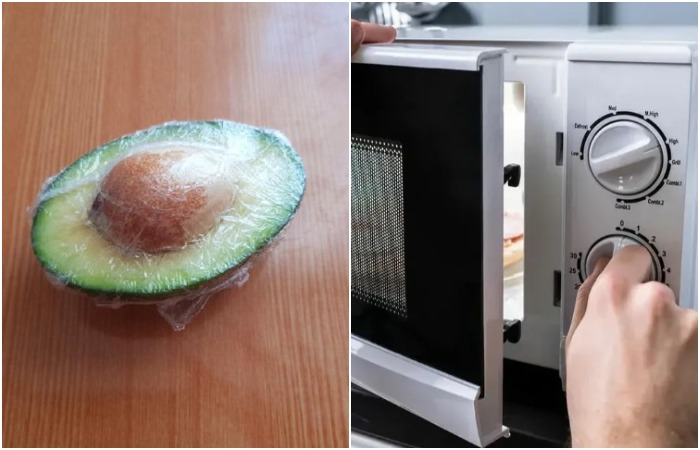 Если у вас в запасе есть всего 10-15 минут, разрежьте продукт на две части по вертикали, уберите косточку, оберните каждую половинку в пищевую пленку, безопасную для микроволновки, и отправьте разогреваться примерно на две минуты. Когда микроволновая печь просигнализирует об окончании цикла, возьмите авокадо и положите его в миску с холодной водой, чтобы оно быстрее остыло. Обратите внимание: пока мякоть остается горячей, она все еще готовится, поэтому если не охладить ее, есть риск «перезреть» продукт.