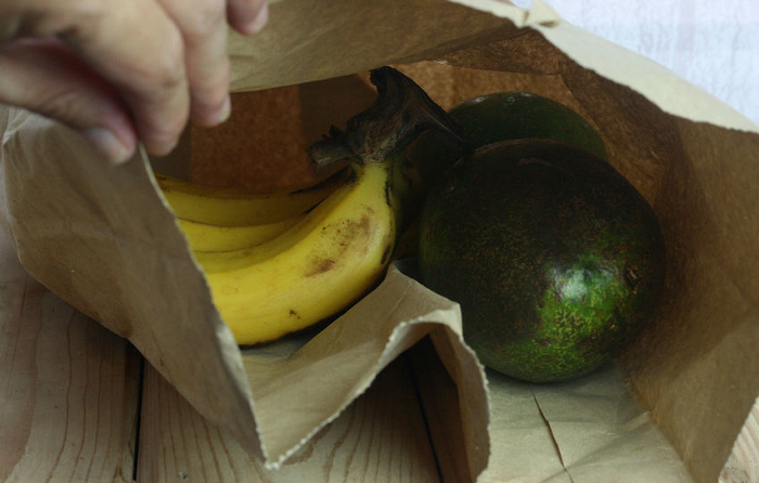 Если авокадо нужен не срочно, и у вас в запасе есть пару дней, положите его в бумажный пакет вместе с яблоком или бананом и поставьте в кухонный шкафчик либо просто оставьте на столе. Почему хранить продукт нужно именно с этими двумя фруктами? Дело в том, что они выделяют газ этилен, который ускоряет созревание плодов. Под его влиянием мякоть становится более сладкой, сочной и податливой.