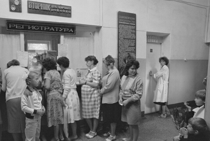 Не менее эпической была ситуация и с больницами. Люди с утра пораньше приходили в регистратуру и выстаивая километровую очередь за талоном, могли уйти ни с чем. Кто знает, почему так происходило на самом деле, но одними из распространённых причин – считалась отсутствующая карта или внезапно закончившиеся талоны. Баталии происходили и под кабинетами врачей, когда какая-нибудь мамаша с орущим на всю поликлинику ребёнком, пыталась проскользнуть перед сидящей в очереди бабкой. В такие моменты начинались самое настоящее смертоубийство. Заводились все с полуоборота, даже те, кто просто проходил мимо. В итоге такие «шоу» заканчивались не только испорченным настроением и сыпавшимися проклятиями, а и подскочившим давлением, обмороками и даже сердечными приступами.
