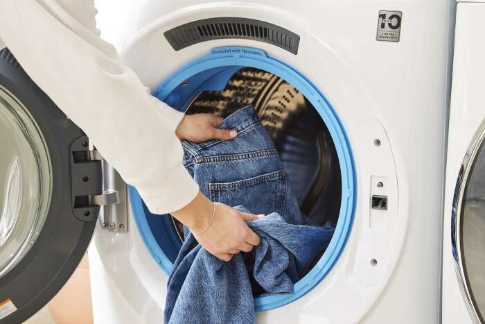 Стирка джинсов в машинке. \ Фото: thespruce.com.
