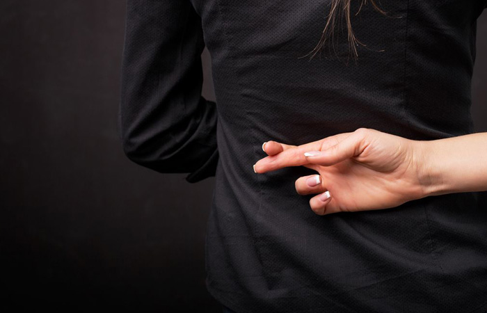 В наши дни «держать пальчики» можно не только на удачу, но и во время увлечения выдумками. Люди скрещивают за спиной указательный и средний палец, а затем начинают говорить неправду. В этот момент они считают, что этот жест защитит их наказание за ложь. Также лжец таким образом сам показывает Вселенной, что сказанное им является неправдой. Вот такой нехитрый способ себя оправдать.