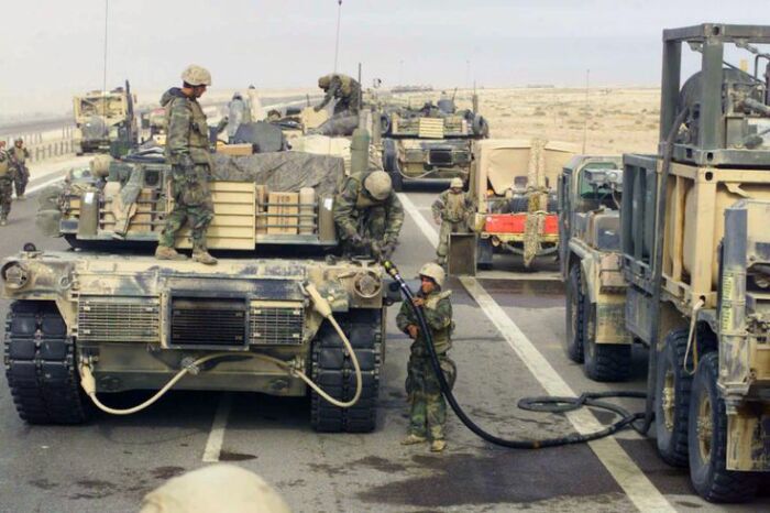 Однако ремонт и техническое обслуживание – это далеко не единственная чисто интендантская проблема танковых частей запада. Другой серьёзный вопрос – обеспечение горючим. И хуже всего дела здесь обстоят с американской техникой. Заокеанские конструкторы уж очень любят, когда «помощнее» да «пооборотистей». Своя правда в таком подходе есть, однако «кушает» М1 в сравнении с танками других стран как не в себя. Конечно, не о каком скандально известном расходе в 1.4 тысячи литров на 100 км речи не идёт. На уже на 200 км газотурбинный AGT-1500 сожрёт примерно столько. На шоссе американский ОБТ в лучшем случае потребляет 360 литров горючего. На целине – от 710 литров на «сотню». Для сравнения, российские Т-80 на 100 км по пересеченной местности потребляют максимум 640-650 литров.