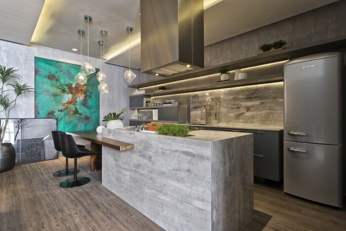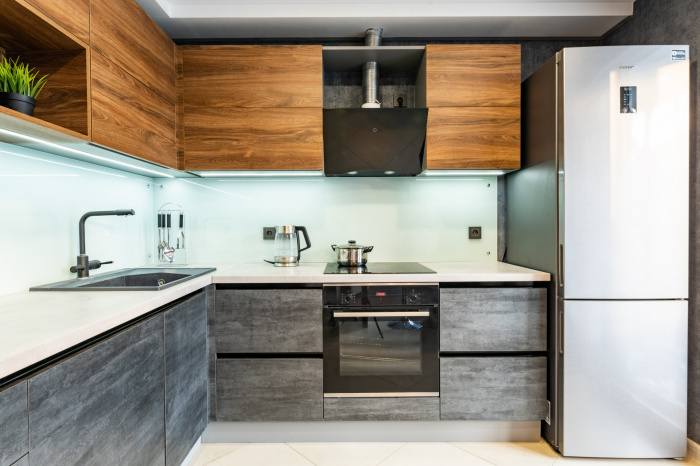 Минималистичные черные и серые кухни обычно выполнены в современном стиле. Они почти всегда становятся частью почти монохромного, успокаивающего, утонченного интерьера в современном стиле.