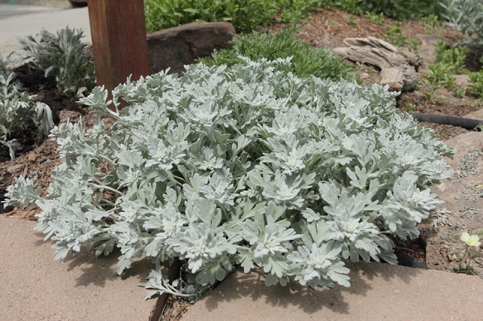 Это красивое растение способно приживаться в самых, казалось бы, неподходящих условиях. Она может быт одновременно устойчива и к засухе и сырости, потому дренаж в земле ей вовсе не обязателен. Также для роста ей вполне подойдут полностью бедные грунты, каменистые и даже песчаные, что подходит далеко не всем растениям. На зиму укрывать полынь не нужно, она отлично переносит морозы. У неё очень красивые серебристые листья резные, которые будут выгодно выделяться, словно светясь, на фоне остальной обыкновенной зелени. Побеги этих кустов обычно не более тридцати сантиметров в ширину. Цветёт полынь с июля по август маленькими жёлтыми цветочками корзинками, которые произрастают вверх.
