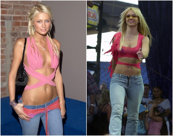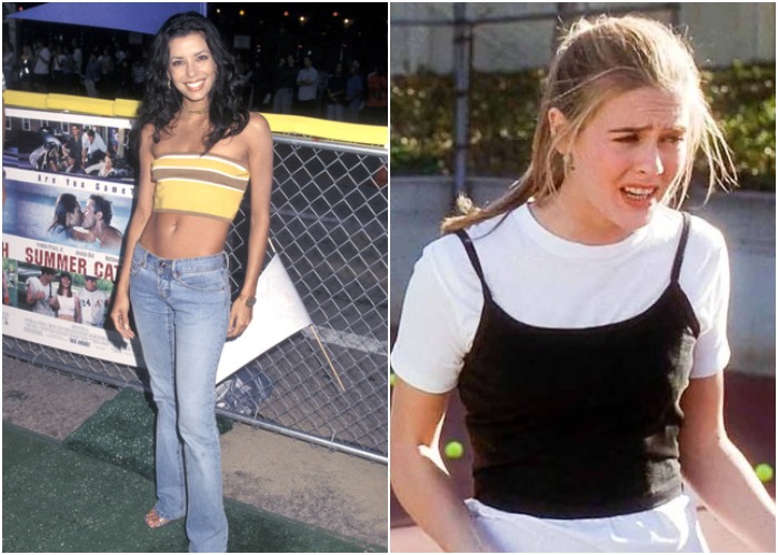 Даже не так – джинсы с ОЧЕНЬ низкой посадкой. В такой одежде невозможно было присесть, ведь окружающим сразу открывалось то, чего они не должны были видеть. А если к образу добавлялся еще и укороченный топ, задача усложнялась в несколько раз. Особенно забавно было в школе на уроках, ведь приходилось постоянно подтягивать эти злосчастные джинсы, которые в сидячем положении открывали поясницу, копчик, ииии…немного того, что было ниже. Интересно, что супернизкая талия считается трендом 2000-х, хотя появилась она именно во второй половине 90-х.