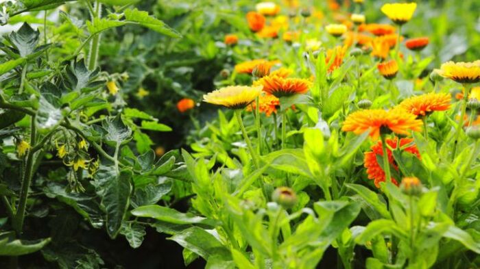 Ноготки - тоже прекрасные помощники на грядках, они привлекают хищных насекомых, а также полезных опылителей. И также имеют корни, способные защищать почву своей мочковидной формой. Цветут они ярко, украшают клумбы, н при этом ещё и съедобны. Календула, ещё одно название ноготков, очень сильно привлекает к своим листьям разнообразных вредителей, и спасает овощи от тли и белокрылки в первую очередь. Но и на здоровье человека растение оказывает очень положительное влияние и является лекарственным средством, помогает против сыпи и других кожных заболеваний. Так что можно смело высаживать ноготки на грядке.