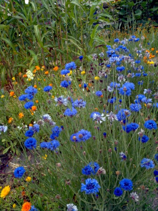 Однолетники тоже могут оказать помощь для овощей и прекрасно украсят огород. Один из них это прекрасный василёк, привлекающий пчёл. А его семенами осенью уже питаются птицы и особенно сильно их любят щеглы. Он отлично подходит для высадки рядом с капустой, ведь васильки привлекают уничтожителей капустной моли, поскольку выделяют привлекающие их вещества, это очень хорошее свойство и главное натуральное.