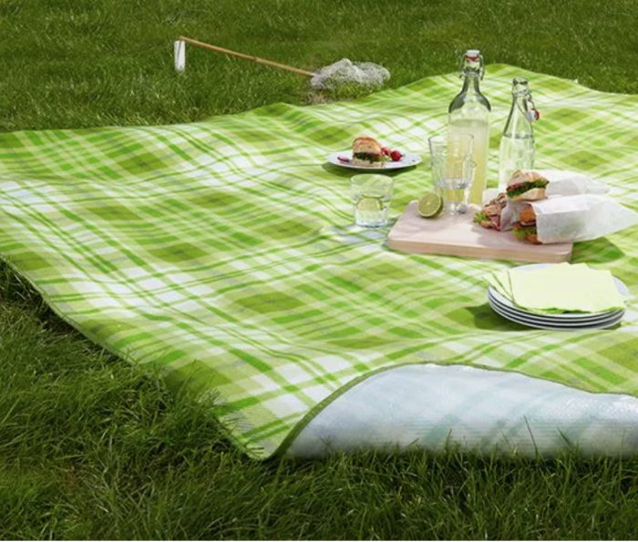 Тем, кто любит отдых на природе, старая шторка из ванной тоже может пригодиться. Из-за своих водоотталкивающих свойств она станет отличной подстилкой для пикника. Лучше взять две занавески и сшить их вместе, чтобы с обоих сторон шторка была защищена от промокания, а внутрь можно поместить плед или одеяло, чтобы сидеть на земле было удобнее и теплее. Украсить такую подстилку тоже можно, добавив яркие принты или бахрому по канту. Подстилка будет легко складываться, не займёт много места в сумке, и очищать её также будет удобно.