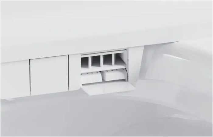 Далеко не у каждого умного туалета есть функция распыления запахов. Срабатывает она автоматически, распространяя по комнате свежесть и маскируя все то, что хотелось бы замаскировать.