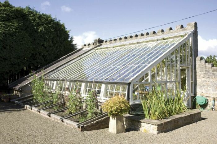Сама теплица проста в постройке как вытянутый прямоугольник, крыша у неё плоская, но расположенная на южную сторону, чтобы внутрь попадало больше света. А та сторона, что смотрит на север, покрыта белой краской и пластиком, сами же стены сделаны из плёнки, чтобы отражать как можно больше солнечного света. Кровля выполнена из сангейна, материал также прозрачный и является отличным теплоизолятором.