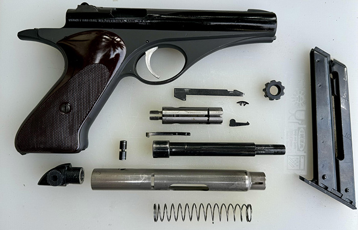 Любопытно, что авиационные корни прослеживаются в этом пистолете не только благодаря форме, да и алюминий был непростым. В его конструкции использовалась рамка из авиационного сплава 7075-T6, а вытачивали её на тех же станках, что и детали фюзеляжа. В результате получился пистолет, который не только выглядел футуристично, но и производился по прогрессивной для своего времени технологии. Сама атмосфера середины 50-х только усиливала эффект: в Америке был бум космической тематики, журналы публиковали эскизы марсианских пушек и лазеров, а дизайнеры играли с идеей оружия будущего. На этом фоне Wolverine воспринимался как вполне реальное воплощение фантастики. Он был первым серийным пистолетом в США, внешний облик которого разрабатывался не под влиянием армейской традиции, а с ориентацией на гражданский рынок и новые визуальные каноны.