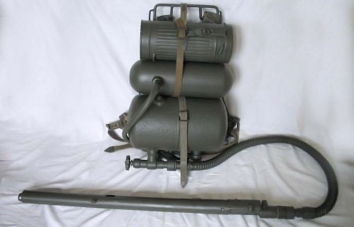 Классический ручной огнемёт времён Второй мировой не претендовал ни на изысканную конструкцию, ни на эффективную работу, ни на хоть какую-то безопасность. Это был всего лишь ранец с двумя самыми обычными баллонами, которые соединялись со стальной трубой при помощи двух шлангов. Например, советский РОКС-2 имел две ёмкости: одну для горючей смеси, вторую — для сжатого газа. Струя топлива выбрасывалась под давлением и воспламенялась запалом в насадке. Конструкция была очень простой, если не сказать, примитивной, да и опасной к тому же. Сам по себе огнемёт был весьма тяжёлым, весил около 26 килограмм с заряженными ёмкостями, а поднять его мог только боец с хорошей физической подготовкой.