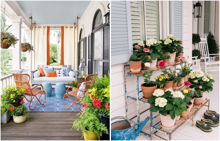 Возможно, этот вариант не самый функциональный, но если вы не нуждаетесь в дополнительной площади для обустройства какой-либо комнаты, тогда он точно вам понравится. Разместите на веранде несколько горшков с цветами и устройте мини-сад. В отличие от полноценной клумбы, здесь вам не нужно будет переживать о качестве почвы, количестве света, погодных условиях и прочих нюансах. На веранде растениям будет так же комфортно, как и в доме, при этом они смогут получить гораздо больше солнечного света.