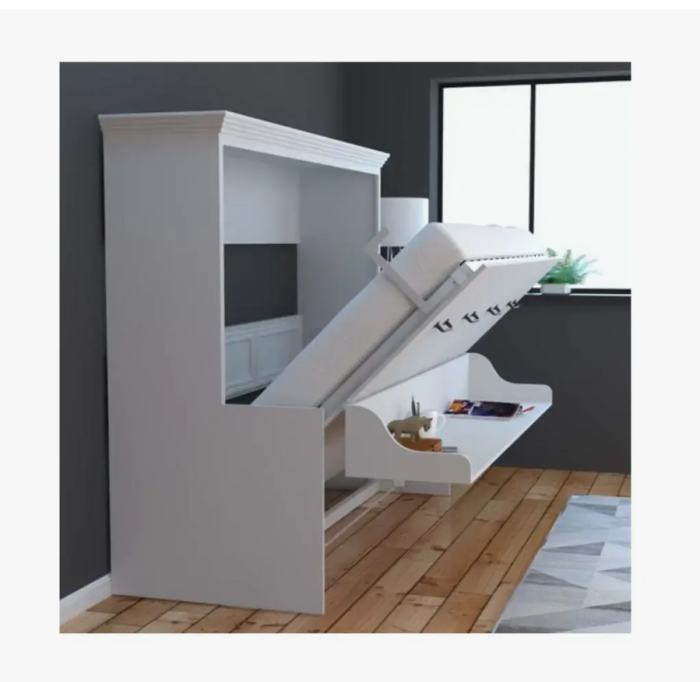 Есть вариант кровати-трансформера, которая крепится к стене, а не ставится на пол. В течении дня она будет поднята и прислонена к стене, а вечером легко опущена назад. Её конструкция напоминает шкаф, что позволит ей не пылиться и прекрасно вписываться в интерьер. А у некоторых моделей при этом с другой, поднятой стороны, может быть отдельный столик или раскладной диван.