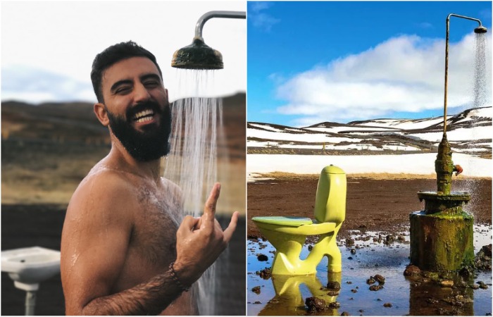 Прямо возле исландской электростанции Krafla можно обнаружить место с бесплатной горячей водой, душем и туалетом. Расположен столь необычный «душевой уголок» недалеко от дороги, посреди безлюдной равнины. И да, у него нет ни стен, ни крыши – только вулкан на заднем фоне и пар от термальных источников.