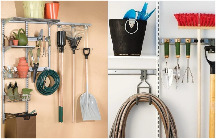Просто сгрузить лопаты и грабли в углу сарая – это, конечно, заманчивая идея, особенно если вы сильно устали, пока работали на огороде, но лучше так не делать. Тем более, если вы правильно организуете систему хранения, этого не придется делать. Установите на стене несколько металлических реек, а на них закрепите ящики, контейнеры, крючки – в общем, все что найдете. Благодаря такому подходу нужный инвентарь всегда будет под рукой, и вам не придется тратить много времени на поиски той или иной вещи. Плюс, гораздо легче будет поддерживать порядок в сарае или в гараже.
