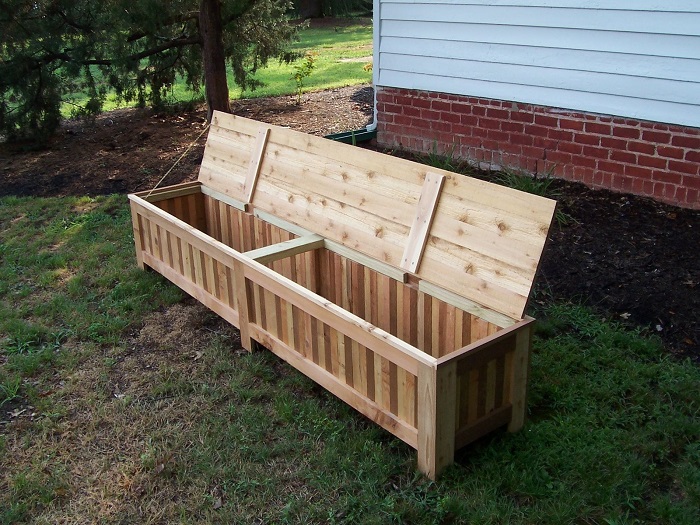 Невозможно работать часами напролет, не отрываясь от грядок. Нужно делать перерывы, чтобы попить воды, перекусить или просто выдохнуть и восстановить нормальное сердцебиение. В любом случае на дачном участке необходимо установить удобную скамейку для отдыха, на которой вы сможете перевести дух. А чтобы она была не только комфортной, но еще и функциональной, выбирайте скамейку с ящиком для хранения под сиденьем.