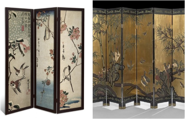 Особую роль в создании атмосферы играютширмы «сёдзи». Изначально их использовали для зонирования, но со временем они взяли на себя еще одну роль: роль декора. Ширмы начали украшать рисунками, текстами и каллиграфией.