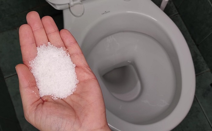 Соль хорошо справляется с налетом в унитазе. / Фото: YouTube