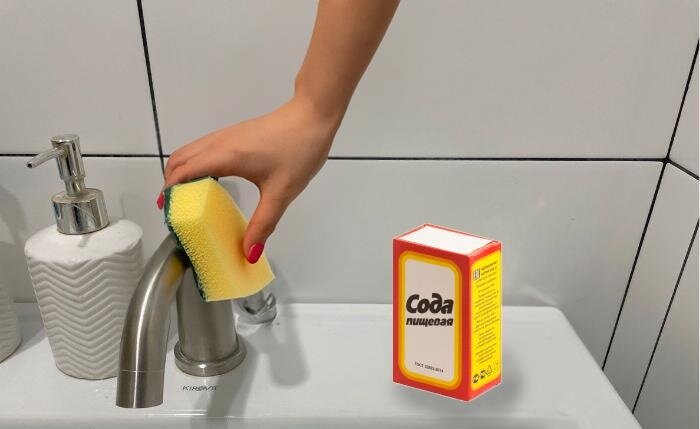 Нанесите соду на влажную губку и протрите кран. / Фото: vopros-ik.mirtesen.ru