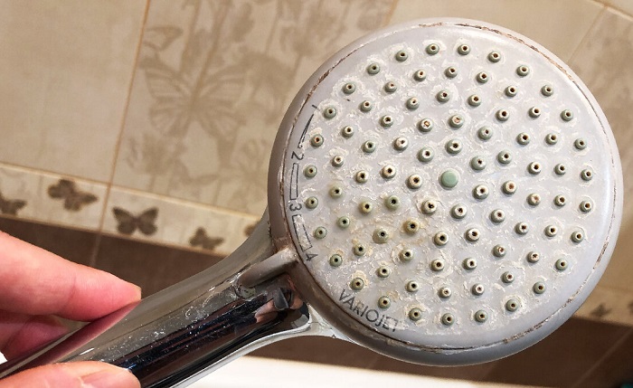 Налет часто забивает отверстия душевой лейки. / Фото: akvahit.ru
