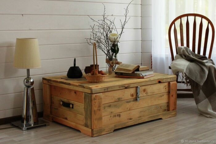 Такие вещи точно найдутся на каждой даче, и они при этом вполне ещё в хорошем состоянии, однако, морально устарели. В них много не поместится, а переносить уж точно будет неудобно, ведь старые чемоданы и сундуки весят больше того, что можно положить внутрь. Однако, старый ящик, сундук и чемодан прекрасно подойдут для создания небольшого, но оригинального кофейного столика в гостиную, на веранду или в беседку на даче. А также может быть кроме столика, прикроватной тумбочкой. Внутрь такого чемодана или сундука можно складывать книги, пульт, гаджеты, и многое другое, что необходимо иногда иметь под рукой в том или ином помещении. А вот если к более лёгкому ящику приделать колёса, то в гостиной получится передвижной столик, на котором можно расставлять закуски, или разложить газеты, сделать это мобильным местом для шитья или вязания. Ножки всем этим предметам можно выбрать яркие, или наоборот изогнутые, чтобы больше подошли под стиль интерьера спальни или гостиной.