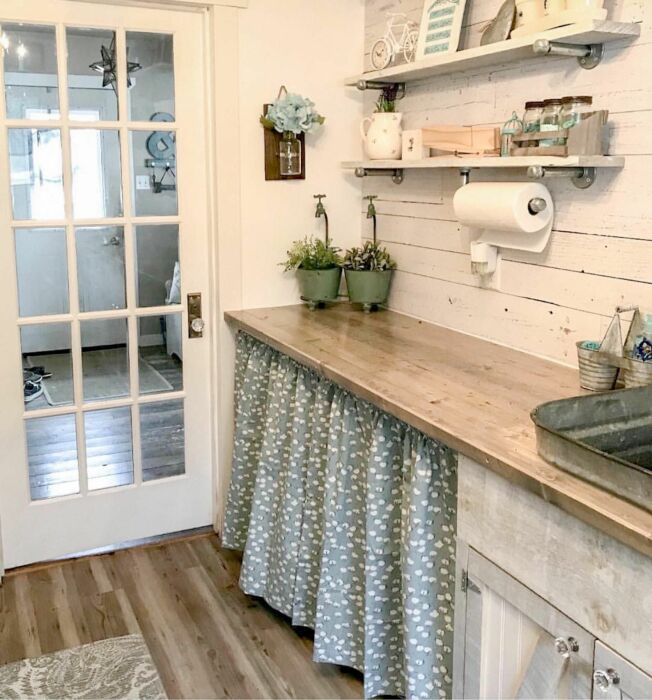 Тканей на даче всегда в избытке, а вот, что сделать с ними и куда применить - идей нет. Со временем они тоже приходят в негодность, даже если лежат сложенными в сухом и проветриваемом шкафу. Материал начинает желтеть или просто истлевают. Но некоторым небольшим отрезам тканей можно найти интересное и вполне современное применение. Многие дизайнеры интерьеров вернулись к идее оформления кухонного гарнитура. Это добавляет лёгкости, интересных акцентных нот на всю кухню — использование шторки вместо дверок шкафчиков. К тому же, благодаря использованию такой шторки можно заменить уже устаревший дизайн всего гарнитура, его не придётся выбрасывать. Стоит просто снять дверцы в тех местах, где они пришли в негодность, и повесить вместо них раздвигающиеся тканевые шторки.