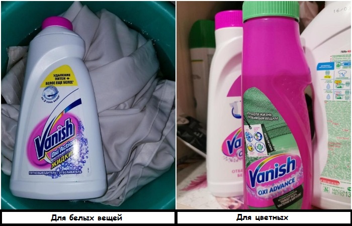 Универсального средства для стирки не существует, особенно если речь идет о пятновыводителях. Поэтому прежде чем использовать его для очищения ткани, внимательно прочитайте информацию, указанную на упаковке. Так, например, если на пятновыводителе написано «для белых тканей», наивно полагать, что он отлично справится и с пятнами на цветной одежде (возможно, пятна и исчезнут, но вместе с ними исчезнет и яркость ткани). В этом вопросе лучше не экспериментировать, и следовать инструкции на флаконе.