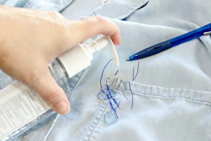 Пятно от ручки советуют убирать санитайзером для рук. / Фото: kasheloff.ru