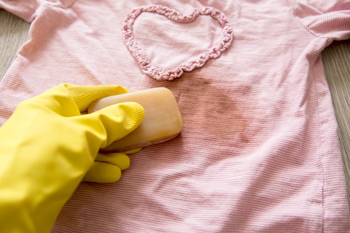 Мыло и моющие средства хорошо справляются с пятнами, но их можно использовать только после того, как вы прополоскали грязную одежду в холодной воде. А вот если сразу натереть участок хозяйственным мылом, оно лишь задержит загрязнения, особенно если речь идет о пигментных пятнах – следах от вина, чая, кофе и пр.