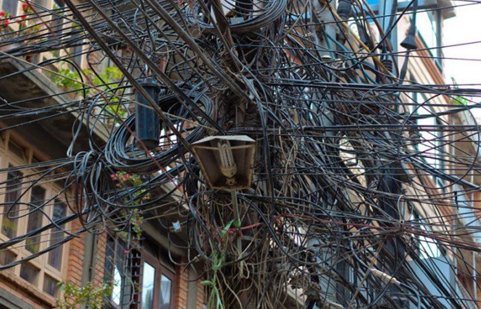 Из-за частых землетрясений провода находятся на поверхности. / Фото: habr.com