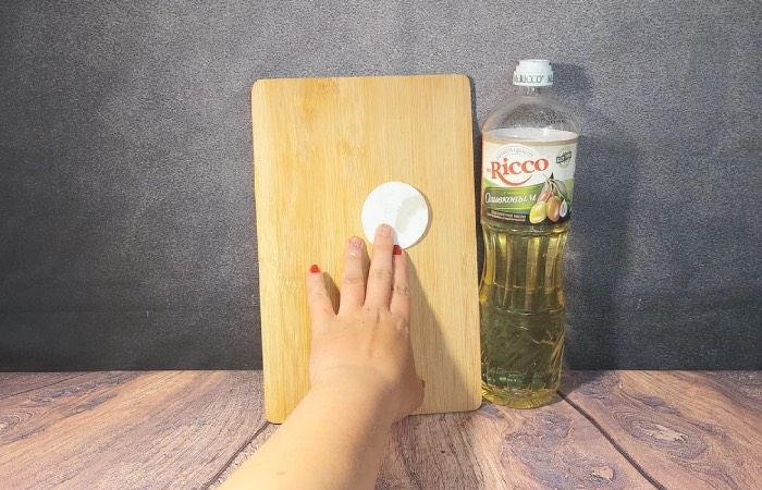 Все, что вам понадобится, – это лишь растительное масло. Оно наверняка найдется на вашей кухне. Для начала сполосните разделочную доску прохладной проточной водой. После чего нанесите немного масла на ватный диск и проторите им пятна. Таким образом, вы сможете без труда удалить свекольный сок со своей разделочной доски.