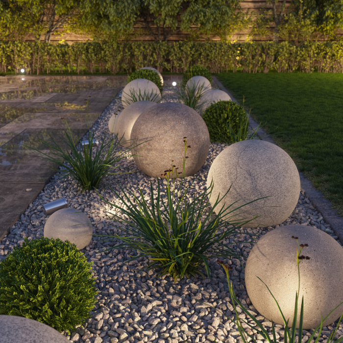 Шары из камня и бетона уже можно встретить во многих дачных садах. И это не случайно, они подойдут как к минималистическому скандинавскому дизайну, так и саду в классическом стиле с топиарными деревьями. И будут украшать как рокарии и альпийские горки, так и простые стандартные клумбы. Один или композиция из таких шаров разного размера более выигрышно выглядят рядом с чабрецом, флоксами или вербейником. А также и другими почвопокровными растениями как барвинок и зеленчук. Такие шары должны всё-таки выделяться, а не выглядывать из-за больших листьев высоких астений. Можно отыскать и натуральные камни шарообразной формы, они называются реликтовыми, тогда их ценность будет куда больше. Тогда сад сразу де прекратится в современный уголок, где захочется проводить больше времени.