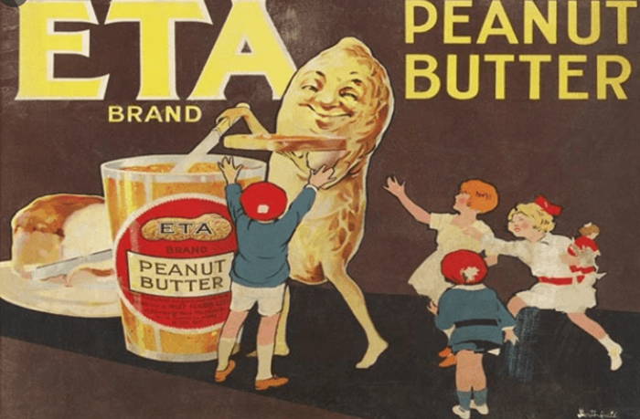 Реклама арахисовой пасты, которая быстро стала популярной среди американцев.