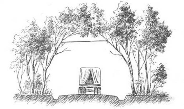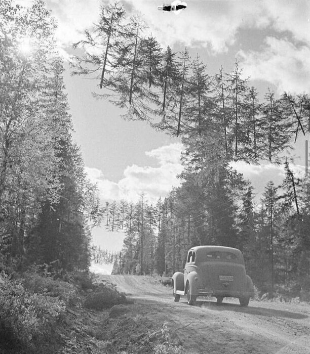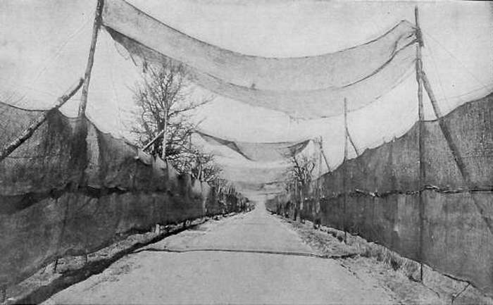 Снимки с изображением загадочных летающих над автомобильной дорогой деревьев отнюдь не продукт фотомонтажа и даже не результат деятельности инопланетян. На самом деле всё до ужаса просто: на фотографии запечатлены наддорожные маскировочные маски. Ставят такие, как несложно догадаться, для маскировки дороги. Конкретно эти чёрно-белые фотографии были сделаны в Финляндии недалеко от советской границы в преддверье Второй мировой войны. Несмотря на откровенно чудной вид, подобные вертикальные конструкции над дорогой были весьма действенным средством сокрытия транспортных путей. Причём помогали такие маски как от удалённого наблюдателя на земле, так и от средств воздушной разведки.