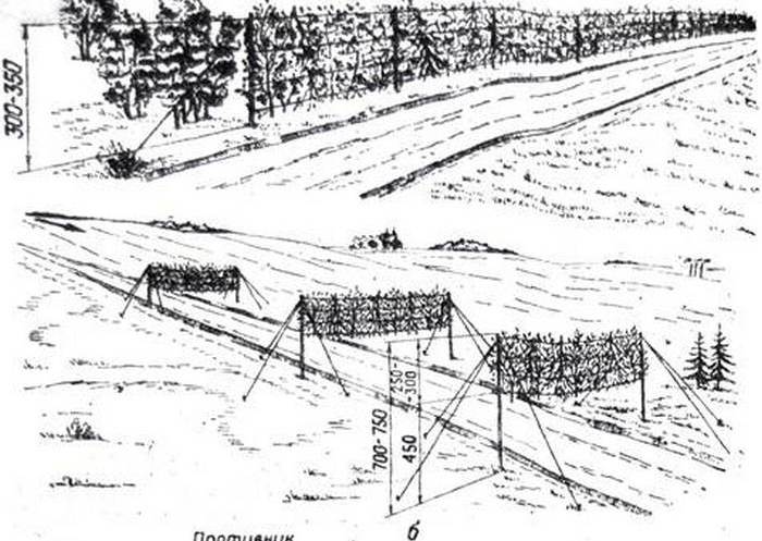 Так, например, еще в 1150 году в эпоху седого средневековья Изяслав Мстиславович смог заполучить тактическую инициативу использовав против противников такой простой, но действенный приём как постановка ложных объектов – обустроив ложный лагерь с яркими кострами. В Великую Отечественную войну широчайшим образом использовались те самые вертикальные маскировочные маски. Причём в некоторых случаях советские инженеры устанавливали целые сотни километров подобных «заборов». Например, именно благодаря маскировочным мероприятиям Красной армии удалось скрыть значительную часть позиций и передвижения войск в ходе сражения на Курской дуге.