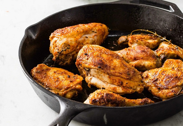 • В рецепте написано, что птица будет готовиться 20 минут? Отлично, это ваш ориентир. Однако не следует полагаться исключительно на него. Лучше обзаведитесь кулинарным термометром, и проверяйте температуру внутри мяса. Идеальный показатель – 74 градуса. Когда увидите эту цифру на термометре, может снимать курицу со сковороды или вынимать из духовки.