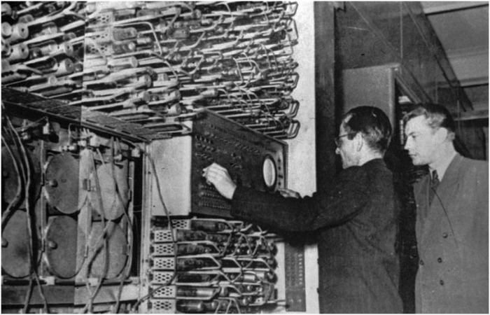 В Киеве в 1950 году в полуразрушенном здании завершались последние приготовления к пробному запуску устройства, занимавшего целое крыло двухэтажного строения, которое состояло из шести тысяч электронных ламп и потребляло мощность целого завода. 6 ноября Малая электронная счетная машина (МЭСМ) успешно решила тестовое уравнение.