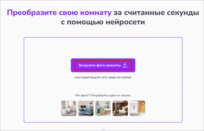 1. Загрузите фотографию комнаты, которую хотите преобразить.