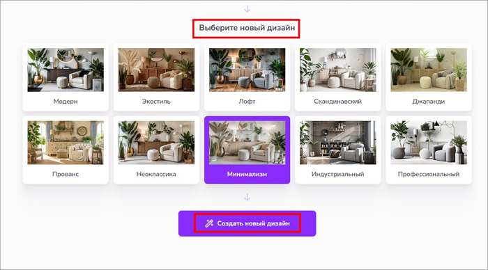 4. Дождитесь, пока ИИ проанализирует интерьер и предложит новый дизайн.